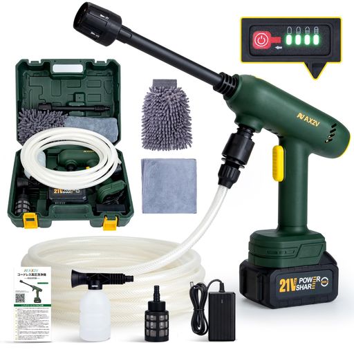 高圧洗浄機 コードレス 充電式 高圧噴射3MPa 3段階調節圧力 バッテリー駆動 21V 300W ・・・