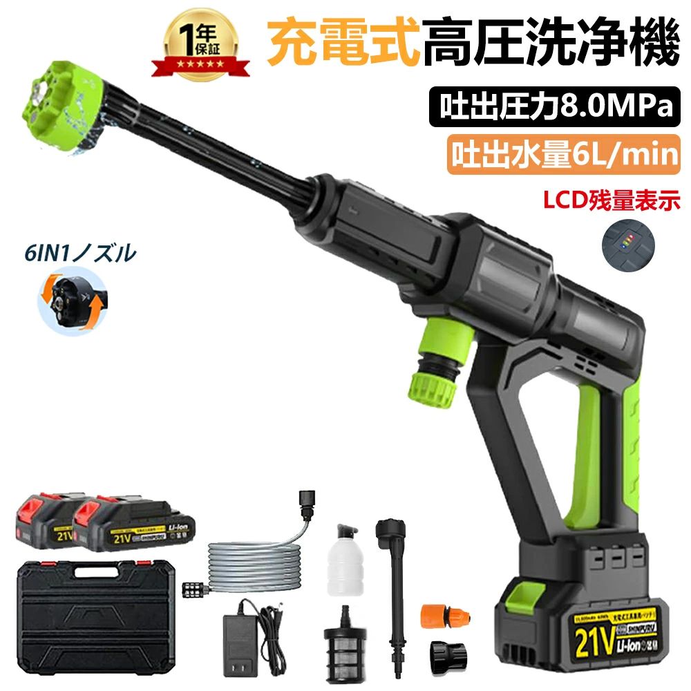 高圧洗浄機 充電式高圧洗浄機 コードレス 8MPa吐出圧力 残量表示 マキタ互換バッテリー PSE認証済洗車機 10mホース 6in1多機能