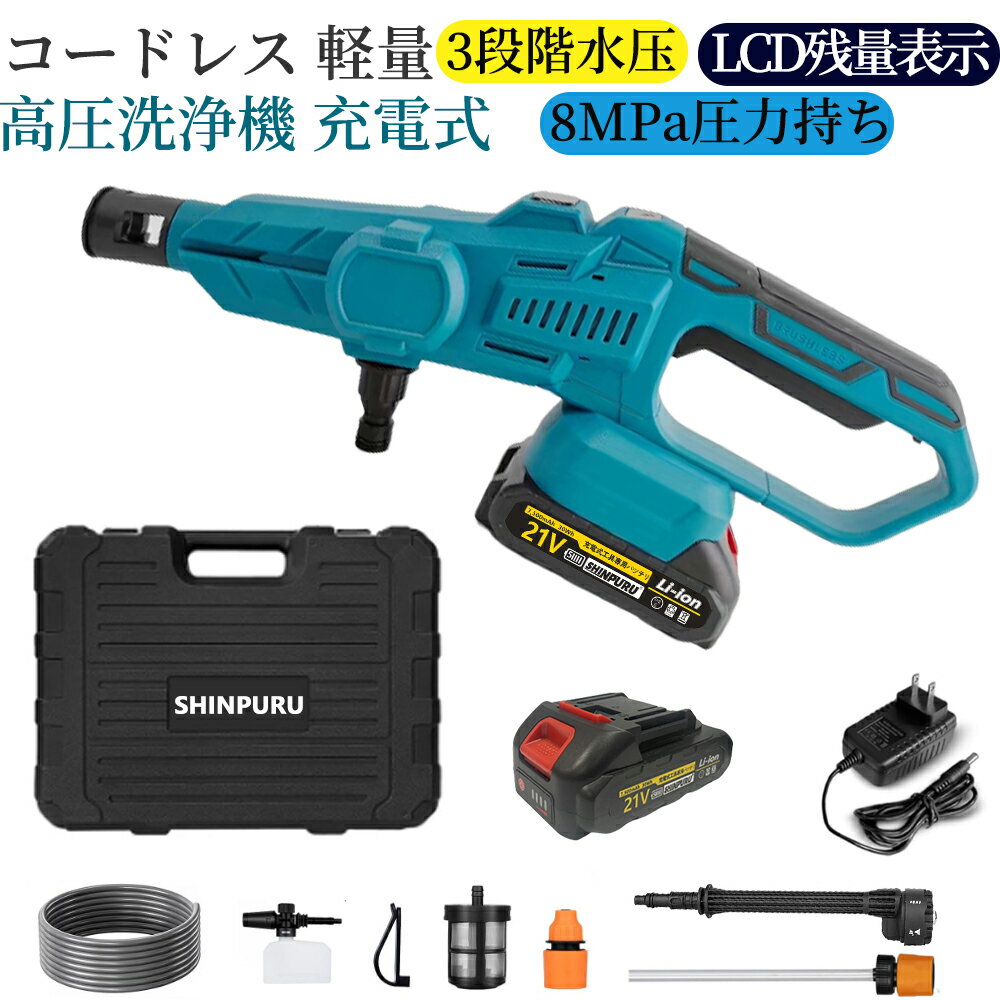 【楽天1位】【3段階水圧調整】高圧洗浄機 充電式 コードレス 洗車 8MPa吐出圧力 家庭用 高圧ク・・・