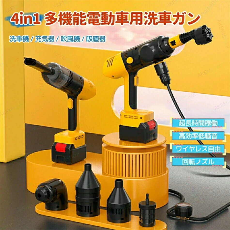 4in1高圧洗浄機・空気入れ・掃除機・送風機 高圧洗浄機 コードレス 充電式 空気入れ ハンディ コ・・・