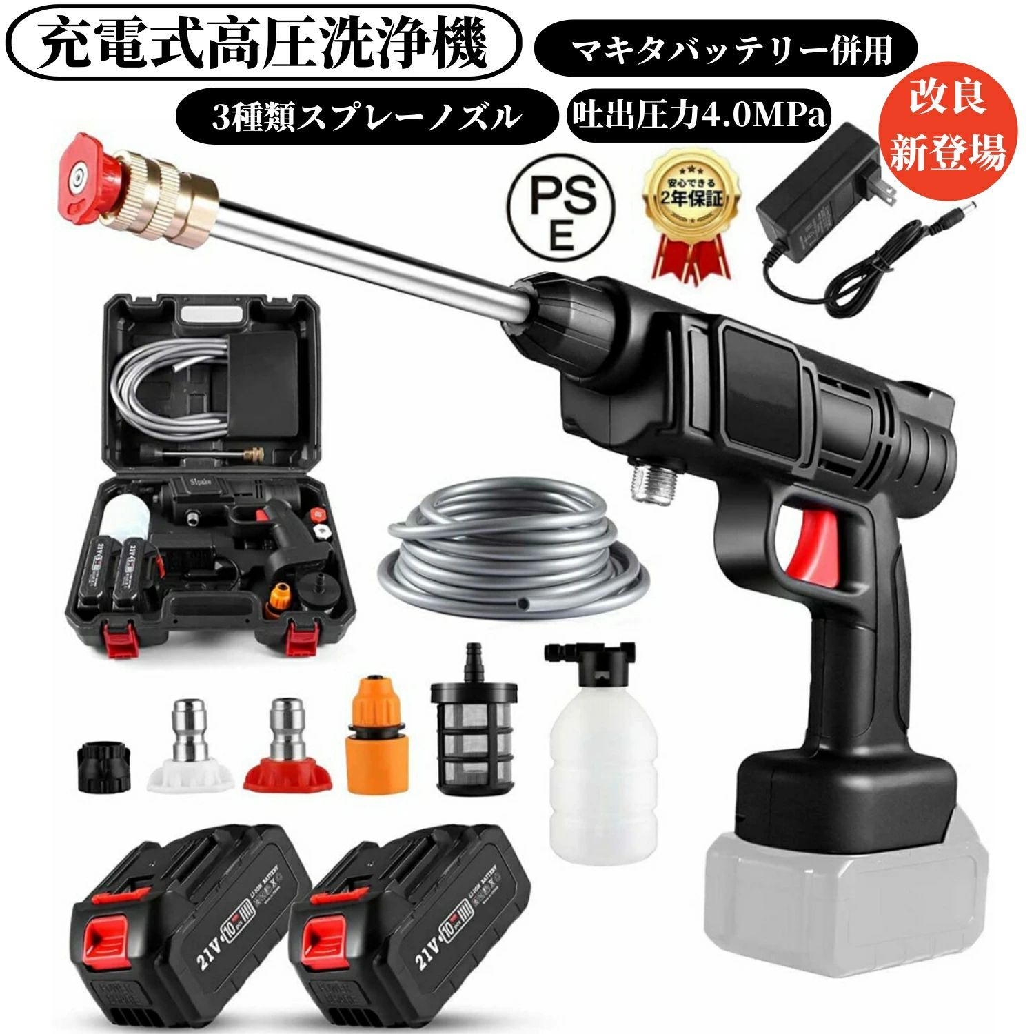 強力噴射で頑固な汚れも瞬時に洗浄 ペットボトル対応&6in1多機能ノズルで幅広く活躍 コードレス充電式でどこでも使える軽量コンパクト設計 21Vバッテリー対応 2年保証付きの安心モデル