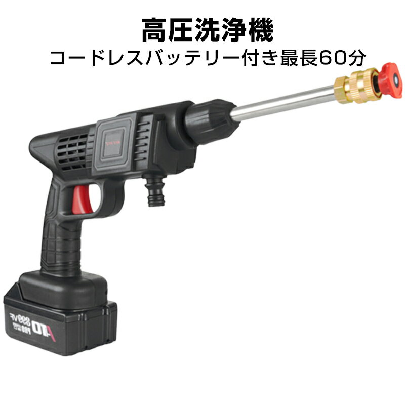高圧洗浄機 コードレス 充電式 バッテリー充電式 ホース付き 洗車 家庭用 ハンディウォッシャー 水・・・
