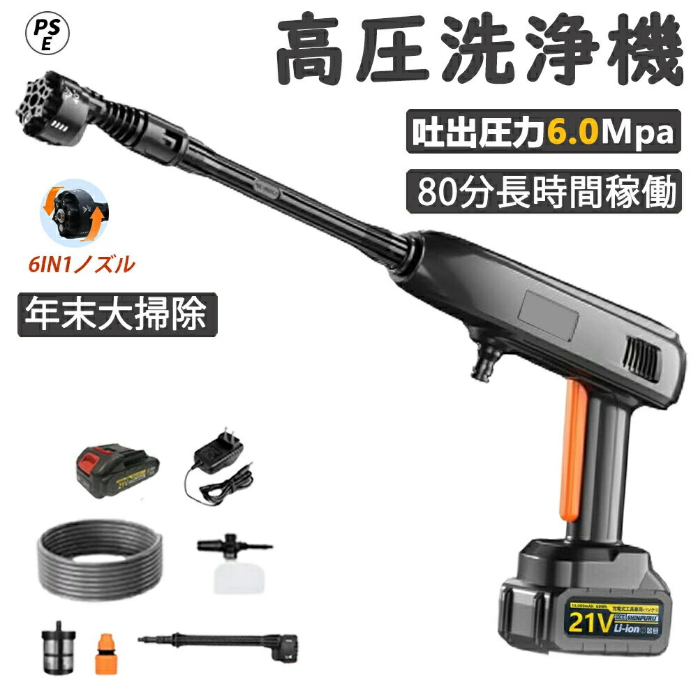 高圧洗浄機 コードレス 洗車 充電式 家庭用 高圧クリーナー 軽量 21V バッテリー 6MPa吐出・・・