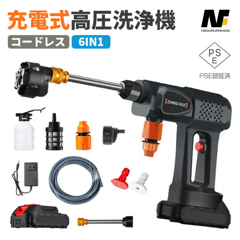 高圧洗浄機 コードレス 6 in1多機能ノズルタイプ新登場!バッテリ 高圧洗浄機 コードレス 充電式 ポータブル 静音 パワフル 掃除用品 外壁掃除 洗車 車掃除 洗浄 そうじ 掃除