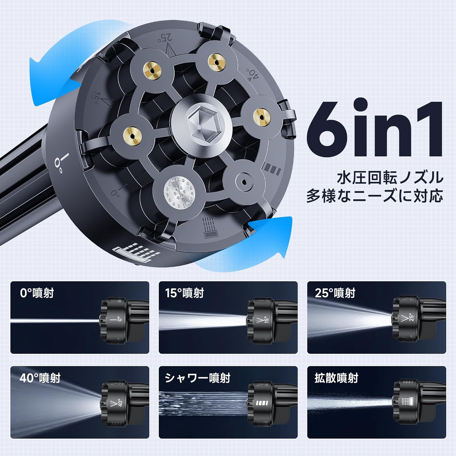 高圧洗浄機 コードレス 園芸用 充電式 6in1多機能噴射ノズル 年末大掃除 1500倍プースター ・・・