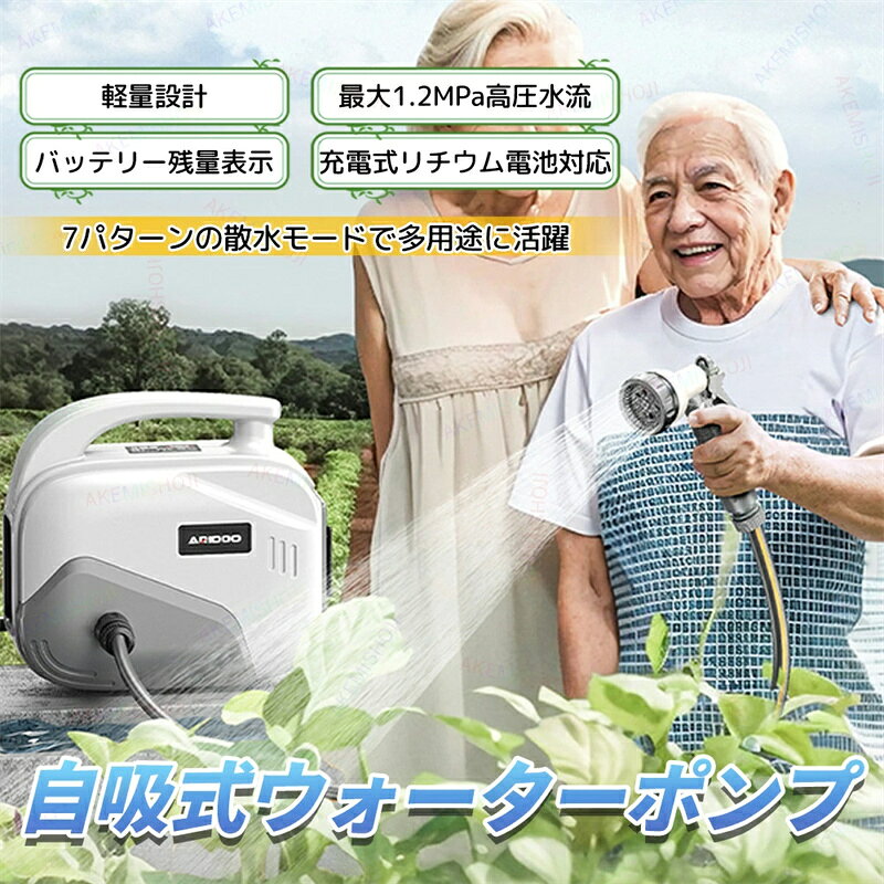 ウォーターポンプ 充電式ウォーターポンプ 10m 20m 30m バッテリー2個 自吸式ウォーターポ・・・