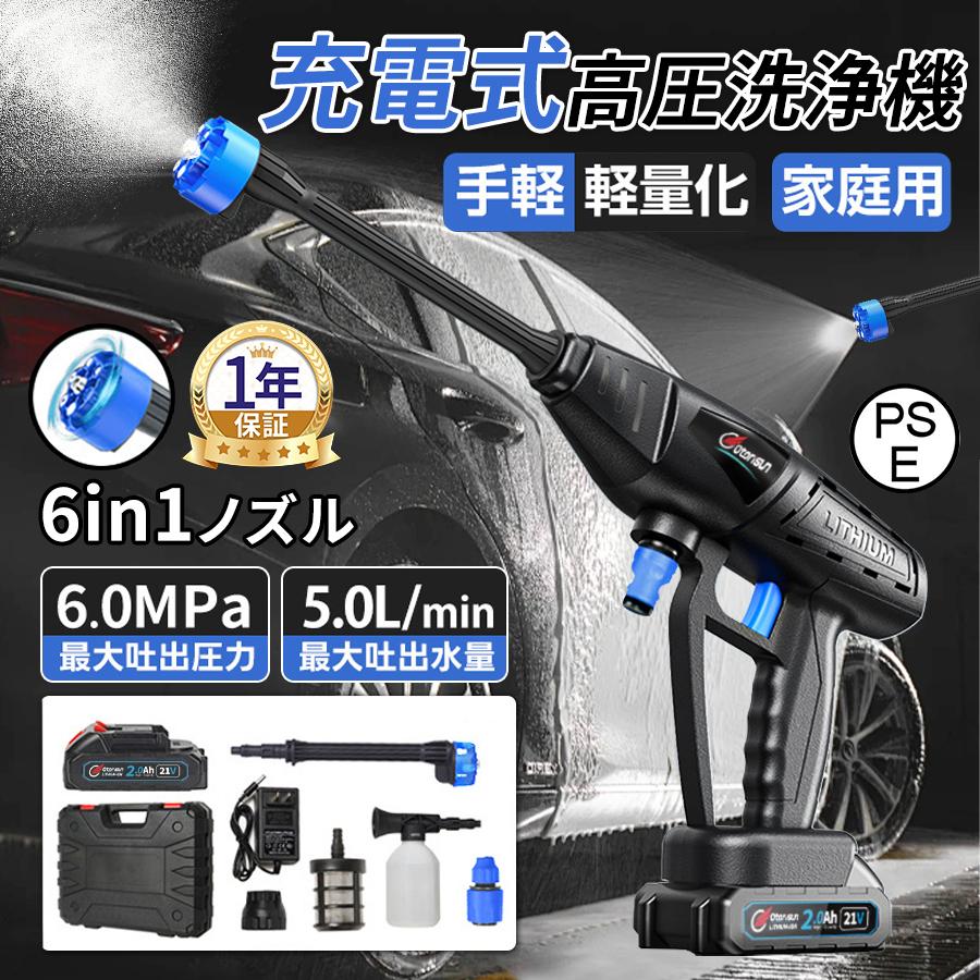 高圧洗浄機 コードレス 充電式高圧洗浄機 電動工具 コードレス洗浄機 高圧洗浄 最大水圧 6.0MPa 多機能ノズル自吸式電源コードは 洗車 強力噴射 洗浄 電動工具 大掃除 自吸タイプ 家庭用