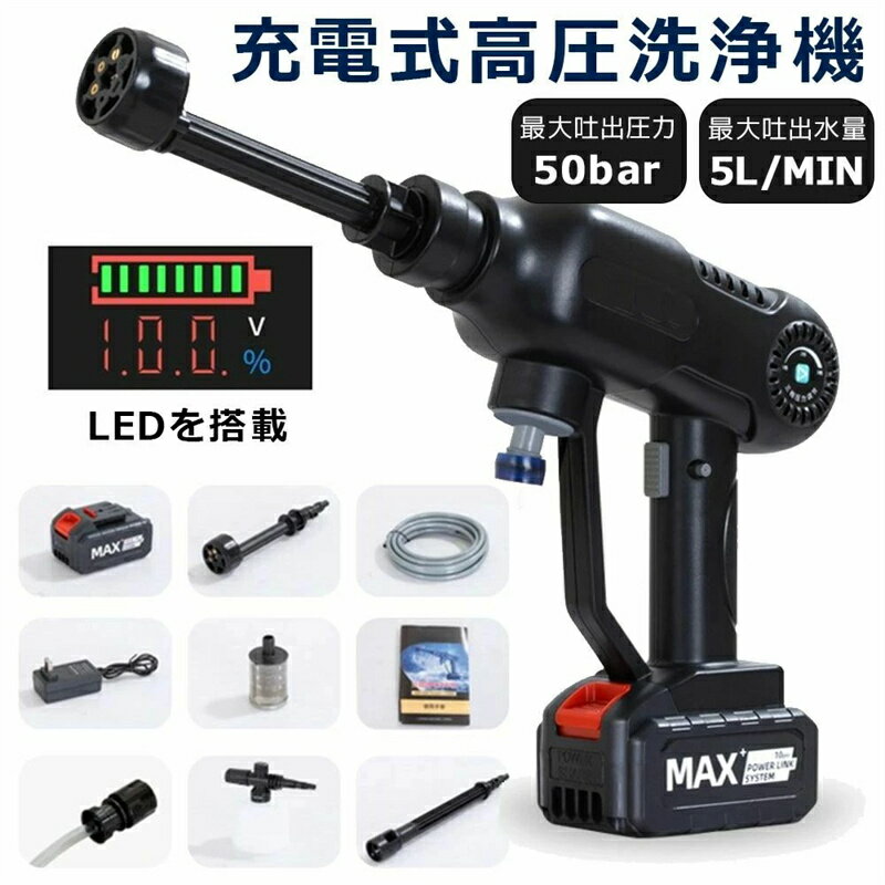 高圧洗浄機 充電式 コードレス 高圧洗浄機セット 洗車機 強力5.0MPa 高圧クリーナー 水圧調整・・・