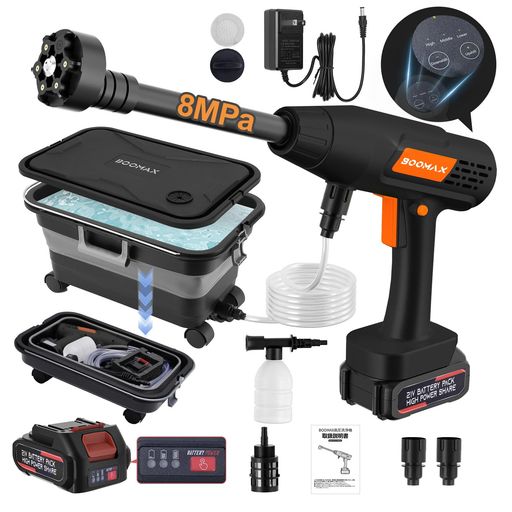2025初登場·技術更新Boomax高圧洗浄機22L折り畳みバケツ付きコードレス高圧洗浄機USB充電・・・