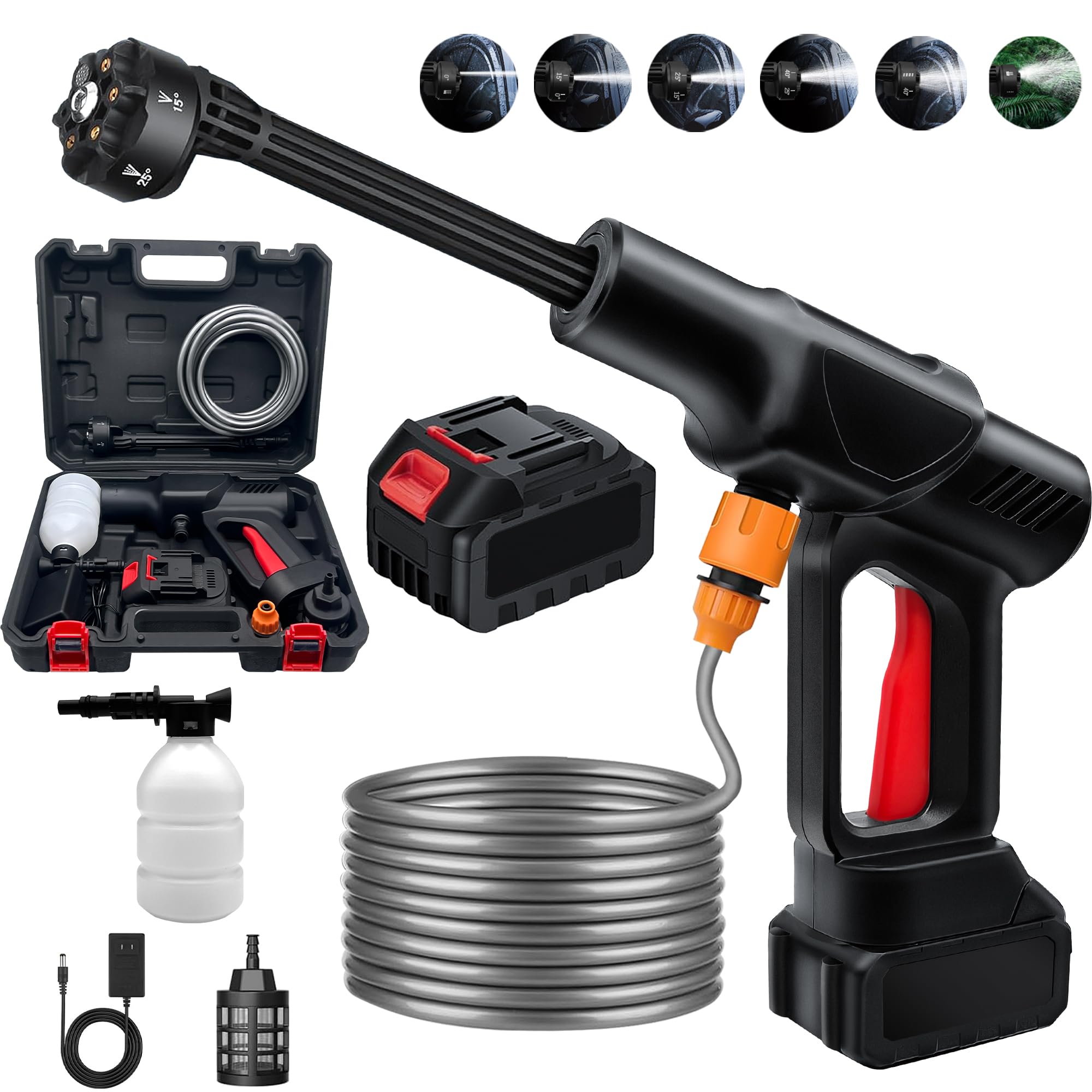 6in1ノズル 充電式洗浄機 家庭用 静音 掃除用品 外壁掃除 洗車 車掃除 水圧 高圧洗浄器 高圧 洗浄 そうじ 掃除 収納バック付き 収納箱付き PSE認証