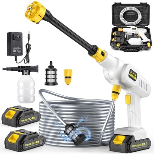 高圧洗浄機コードレス充電式ハンディタイプ高圧洗車機850W6種類ノズル付き最大出水量8L/分軽量コン・・・