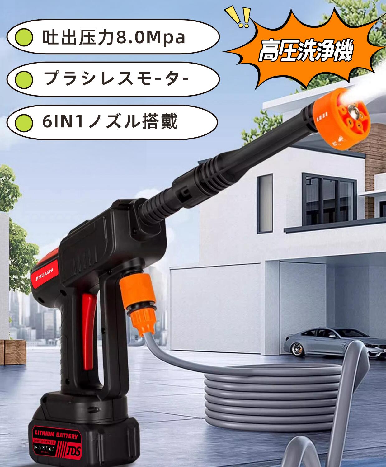 高圧洗浄機 コードレス 充電式 8MPa 6IN1 電力量表示 水圧洗浄機 家庭用 自吸式 多機能ノ・・・