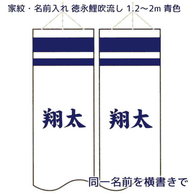 同一名前を横書きで両面に青色で入れる 1.2m〜2m吹流し用【単品購入不可】 徳永鯉のぼりセットと同・・・