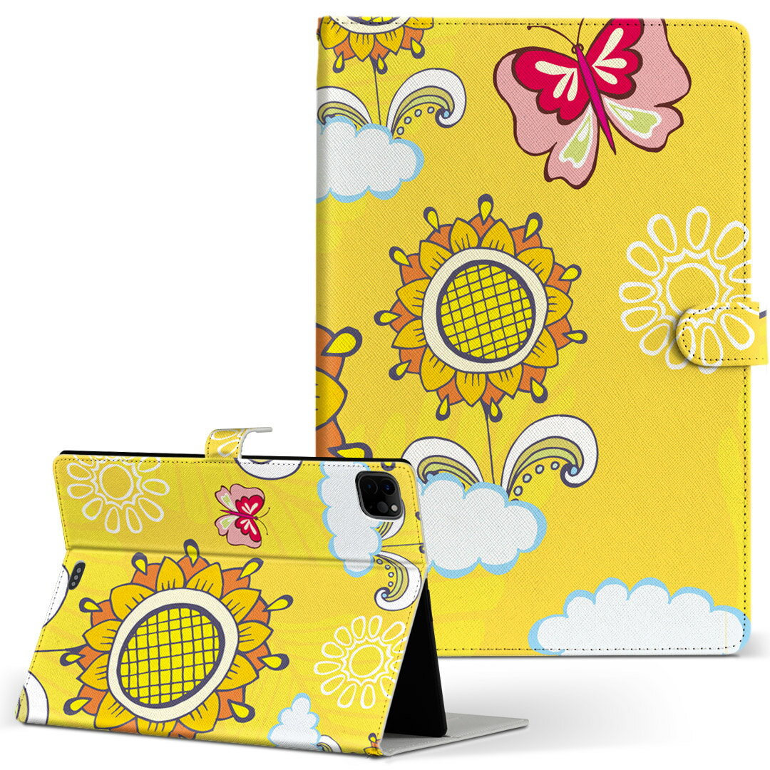 iPad 手帳型ケース フラワー 花 蝶 イラスト 黄色