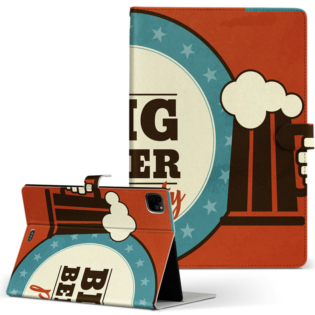iPad 手帳型ケース ユニーク ビール イラスト 赤 レッド レトロ