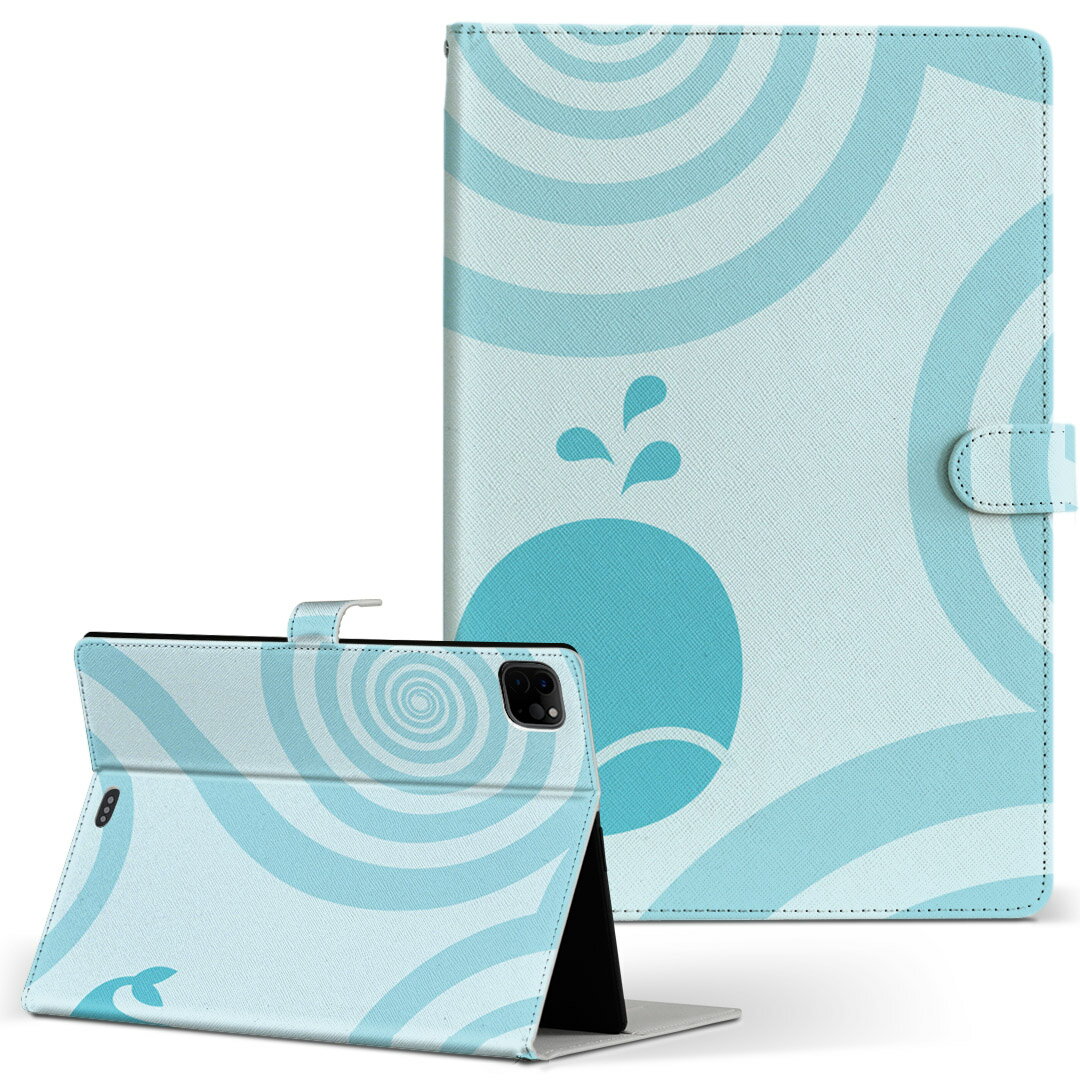 iPad 手帳型ケース チェック・ボーダー くじら 動物 水色