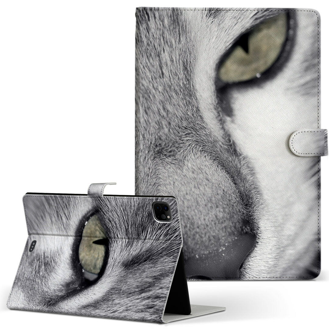 iPad 手帳型ケース アニマル 写真 猫 ねこ モノクロ