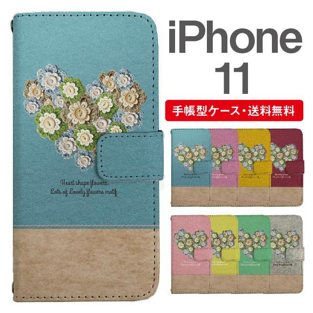 スマホケース 手帳型 iPhone 11 スマホ カバー アイフォン おしゃれ アイフォンケース iPhone 11ケース ハート フラワー 花柄 ニット風 バイカラー