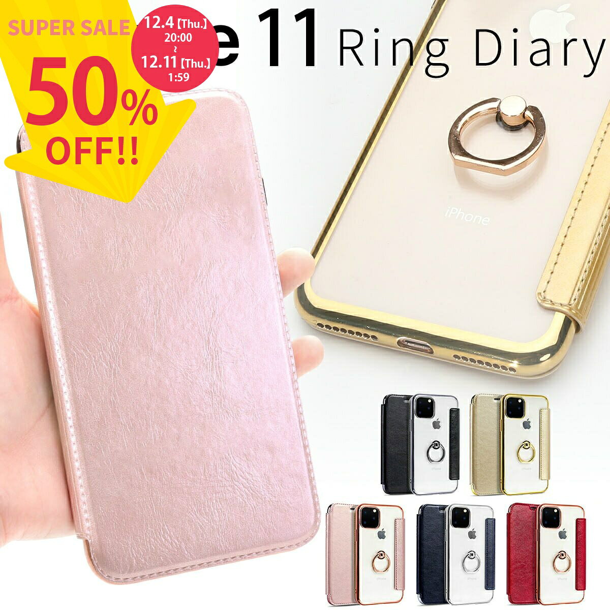 【スーパーSALE半額】 iPhone11 スマホケース 韓国 リング付き超薄手帳型ケース 手帳型 ・・・
