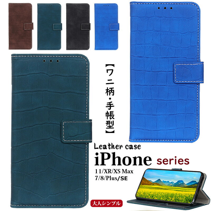 iphone13ケース 手帳型 アイフォン8 ケース iphone X XRケース iphone7 iphone Xsケース iPhone SE(第2世代)2020年 iPhone 11 pro Max phone11 手帳 シンプル 7Plus クロコダイルケース