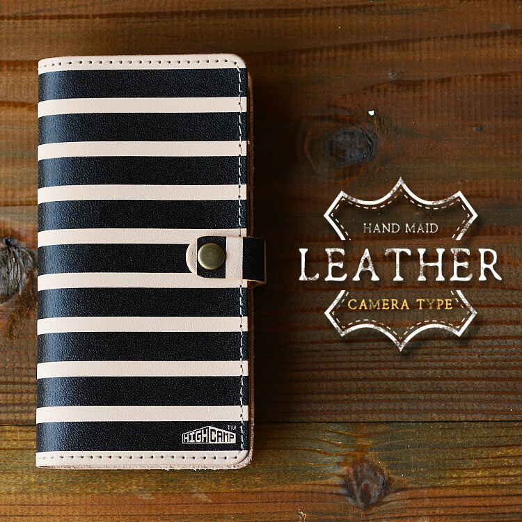 「iphone 17 対応」「ヌメ革ボーダー・ホック・カメラ穴」 スマホケース 手帳型 全機種対応 ・・・