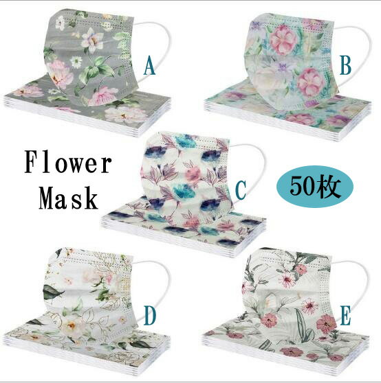 【ポイント5倍+5%クーポン/~27日01:59まで】 花柄 不織布マスク カラー 50枚 (5色柄・・・