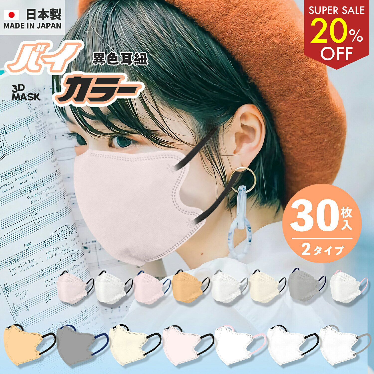 【20%OFF!!スーパーSALE】日本製マスク バイカラー 30枚入り JN95マスク 立体マスク・・・