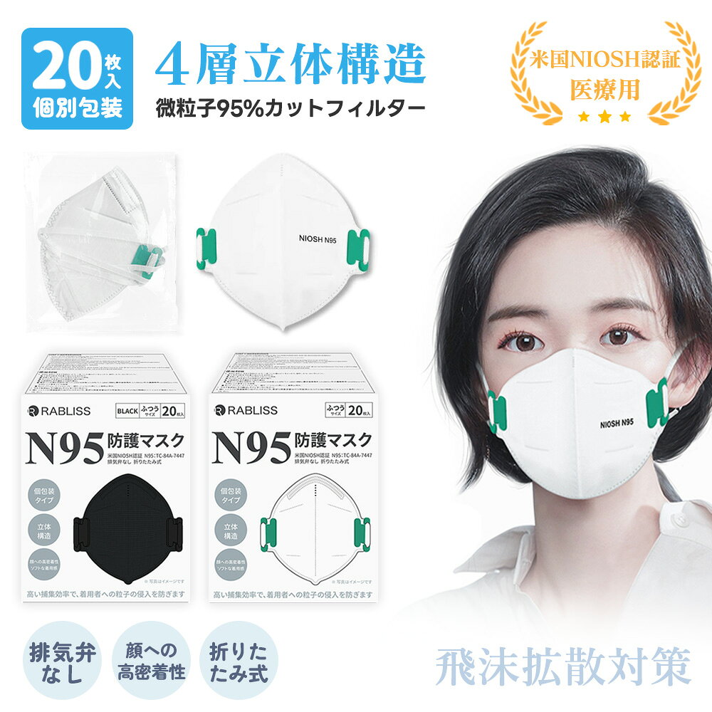 NIOSH(米国労働安全衛生研究所)ナイオッシュ規格合格 医療用 N95マスク 4層構造 メルトブロー高ろ過不織布 ウイルスカット 飛沫感染防止 3D立体構造