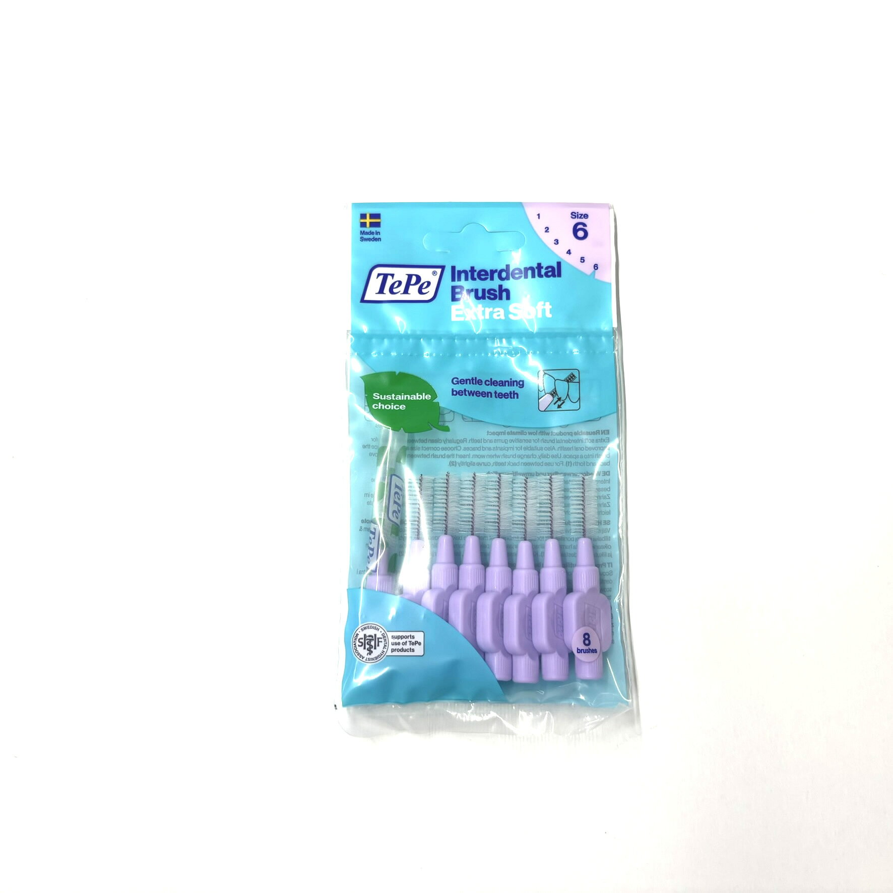 色分け6サイズから選べるTePeの超ソフト歯間ブラシで、歯と歯のすき間も優しく丁寧に毎日のケアを。