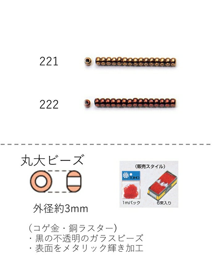 丸大ビーズ(コゲ金 銅ラスター) 糸通し1m(約480粒) NO.221〜222(NO.221 22・・・