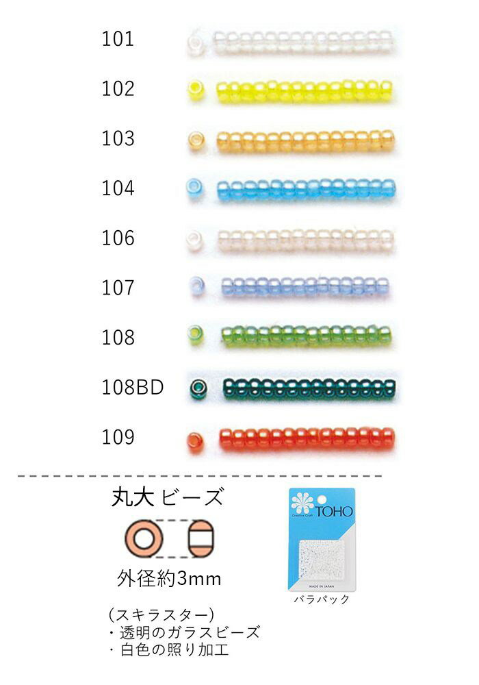 丸大ビーズ(スキラスター:透明 照り加工) NO.101〜109 バラパック 7g 250粒 (NO・・・