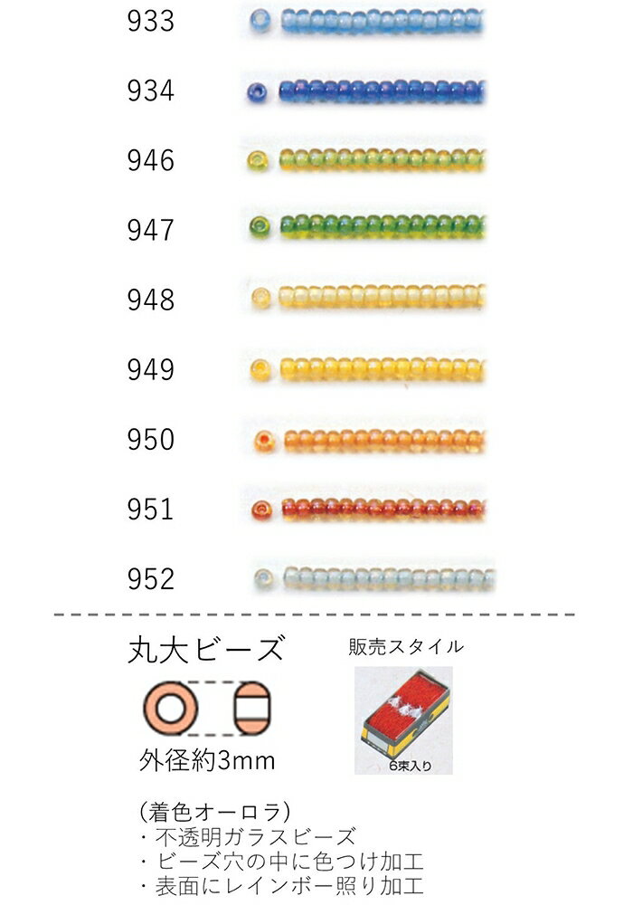 丸大ビーズ(着色オーロラ) 糸通し30m箱(約14,400粒) (NO.933 934 946 94・・・