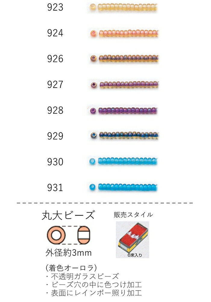 丸大ビーズ(着色オーロラ) 糸通し30m箱(約14,400粒) (NO.923 924 926 92・・・